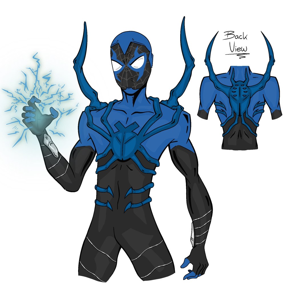 While this is a Miles and Jaime Amalgamation first, I do also want to take some parts of Peter Parker’s Spider-Man mythology and mix that into the history of the Blue Spider-Scarab. Mainly I want to take the whole Ezekiel Sims character and kind of turn him into this universe’s Dan Garrett (The Original – Original Blue Beetle). Here’s the mythical history of the Blue Spider-Scarab; Years prior to the first boom of meta-humans, an interstellar race of super-engineers created the Spider as a weapon – a suit that functions both for the Offensive side of combat as it does the Defensive. But when a battle sends the weapon hurdling towards earth, a man finds it and gains the powers of a spider. Battling lowlife thugs and gangsters in the shadows of his city, The Blue-Spider tries to do his best in his battle against evil, but in an age without supervillains, this first Blue-Spider’s career does not go on for long, going down in myth after removing the Spider-Scarab from his body. Yet, the myth is enough to inspire people years down the line; A group of scientists try to recreate the Spider using a synthetic formula injected into a real life spider. But when the Spider escapes and ends up biting a young Ted Parker, Ted reignites the Blue-Spider moniker and dons his very own blue suit.